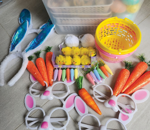 Includes: 4 bunny ears and cotton tails, 6 white rabbits, 5 movable bunnies, 7 mini bunnies, eggs and 8 chicks, 5 free Easter and bunny books.