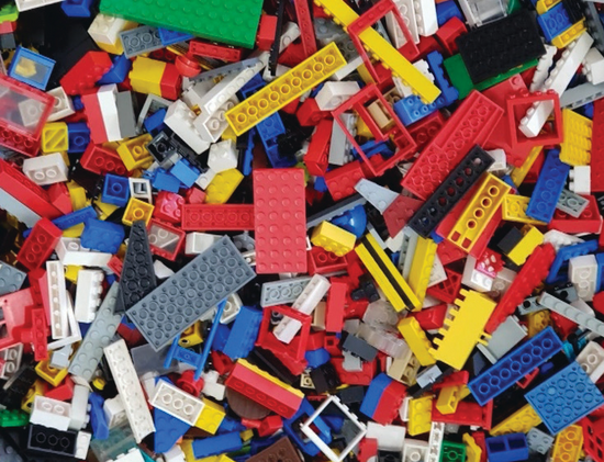 Two crates package. One crate full of specialty parts, wheels, figurines. One crate of assorted Lego pieces for Design Technology Creations.
